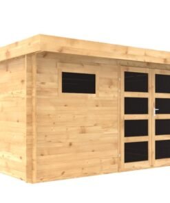 Cet abri de jardin en bois ADRET de 13 m² avec toit plat et madriers de 28 mm sera un atout majeur sur votre terrain grâce à son aspect moderne et sa capacité de stockage.