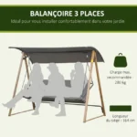 Cette magnifique balancelle de jardin 3 places grand confort sera parfaite pour vous détendre et faire un break au soleil ou à l’ombre. Disposant d’une banquette ergonomique avec coussins d’assise/dossier amovibles et équipé d’un auvent à inclinaison réglable, vous pourrez tranquillement et confortablement lire un livre, boire un verre et discuter en famille ou entre amis. Le meilleur atout repos et détente pour votre jardin, terrasse ou balcon !