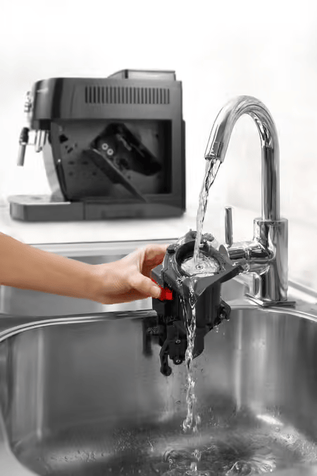 - Le nettoyage : Nous vous recommandons de nettoyer le groupe de percolation une fois par semaine avec de l’eau tiède pour éliminer les résidus de marc de café et les huiles présentes. N’oubliez pas de nettoyer régulièrement tous les contenants, qui sont généralement compatibles avec le lave-vaisselle.