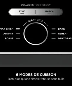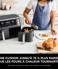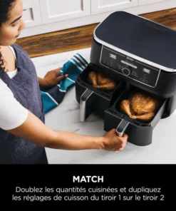 Vous souhaitez cuire au four dans un tiroir et frire sans huile dans l’autre ? Aucun problème ! Le temps de cuisson est différent pour cuisiner un poulet rôti et des frites croustillantes ? Vous n’aurez plus à utiliser différents appareils ni à laisser votre accompagnement refroidir pendant que votre plat principal finit de cuire !