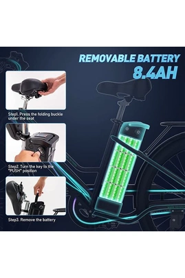 Le batterie peut être retirée et rechargée:De plus, Le batterie de vélo peut être retirée et rechargée, c’est plus pratique et sécuritaire.
