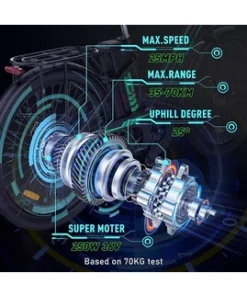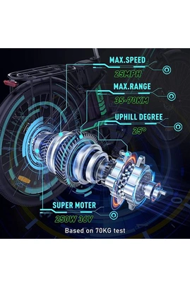 – Autonomie: 35-70KM(Affecté par la charge, la températeure, les conditions routières, le mode de conduite, etc. Par exemple: dans des conditions de 75kg et 25°C, l’autonomie max en mode électrique peut atteindre 35km, et l’autonomie du cyclomoteur dépend de la charge et du style de conduite)