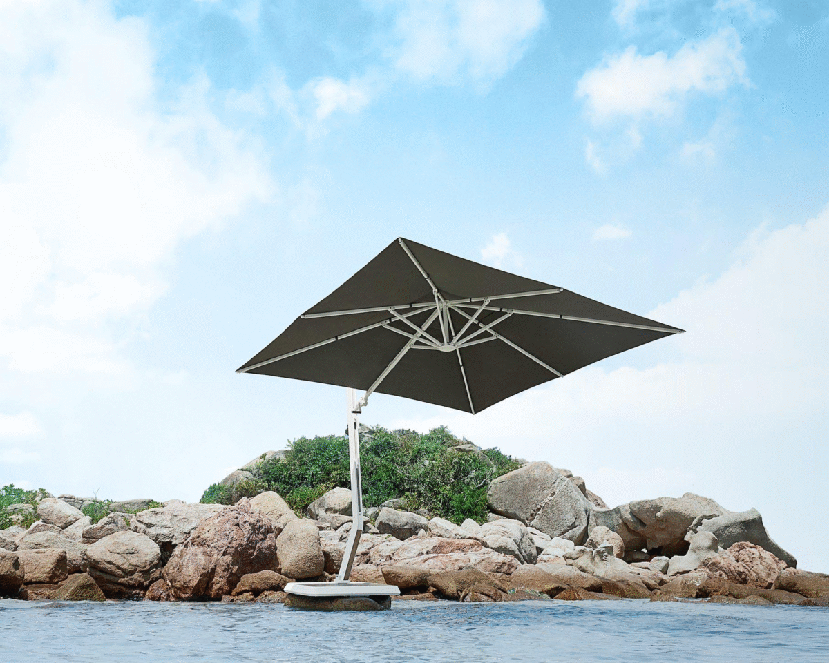 Parasol luxe déporté 3 x 3 m aluminium blanc avec toile sunbrella – AILY design by Pininfarina
