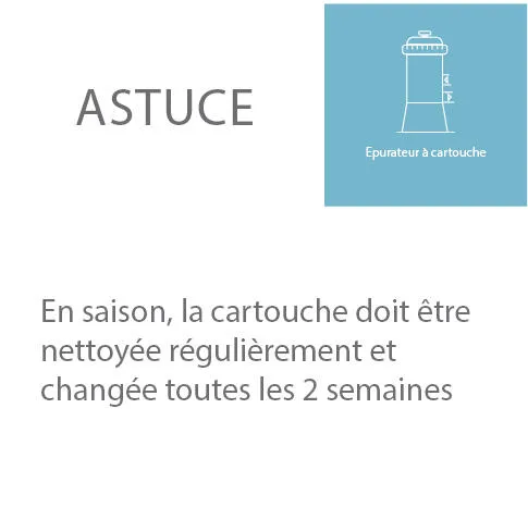 Cet épurateur à cartouche est simple d’utilisation : il suffit de le relier à la piscine. Pensez à nettoyer régulièrement sa cartouche et à la changer toutes les 2 semaines.