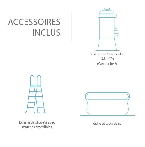 Cette piscine Easy Set Intex est livrée avec un épurateur à cartouche Intex qui vous facilitera l’entretien de l’eau de votre piscine.