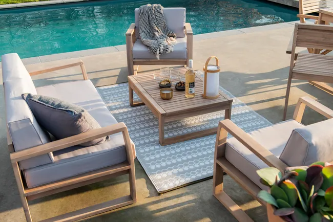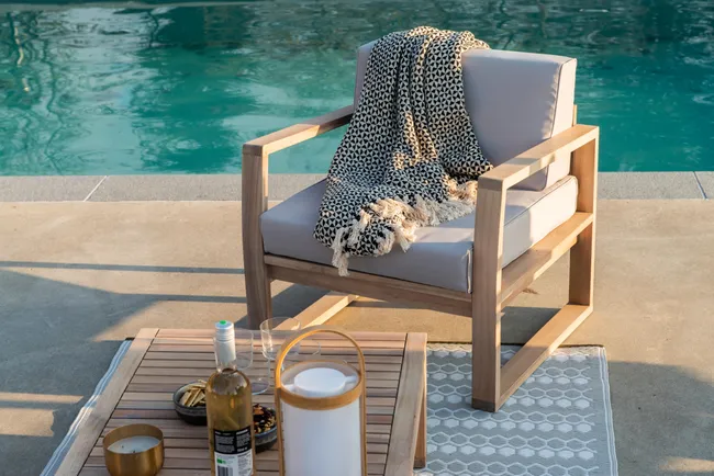 Pour conserver l’aspect esthétique et la qualité de votre mobilier en bois, il existe des produits d’entretien adaptés. Un traitement non filmogène est préconisé une à deux fois par an (en début de saison et en pleine saison). Nos experts recommandent l’huile pour mobilier de jardin, ou encore un saturateur de protection, en se rapportant aux conseils d’utilisation de ces produits.