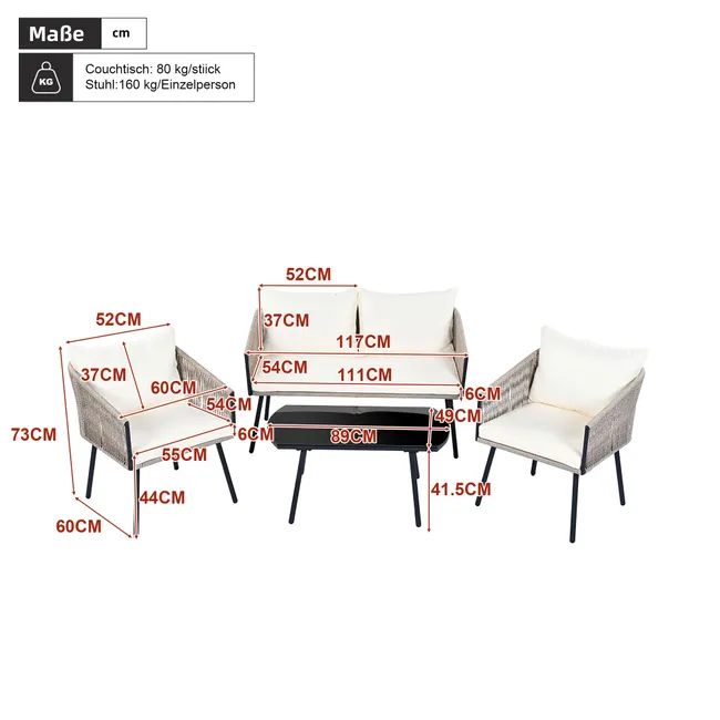 Ensemble quatre pièces, espace social confortable – l’ensemble comprend un canapé double, deux canapés simples et une table basse pour répondre aux besoins de loisirs de plusieurs personnes. Qu’il s’agisse d’une réunion de famille ou d’une réunion entre amis, vous pouvez facilement créer un lieu de rassemblement extérieur confortable pour rendre vos loisirs plus agréables.