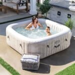 Avec son motif chevron tendance et sa forme carrée sophistiquée, ce spa gonflable s’intègre harmonieusement dans votre espace extérieur, ajoutant une touche d’élégance et de modernité.