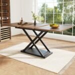 Faites de chaque repas un moment d’élégance avec cette table à manger extensible au plateau bois foncé, sublimée par un pied croisé en métal noir au design sculptural. Idéale pour les espaces modernes, elle allie esthétique sophistiquée et fonctionnalité grâce à son système d’allonge central discret.