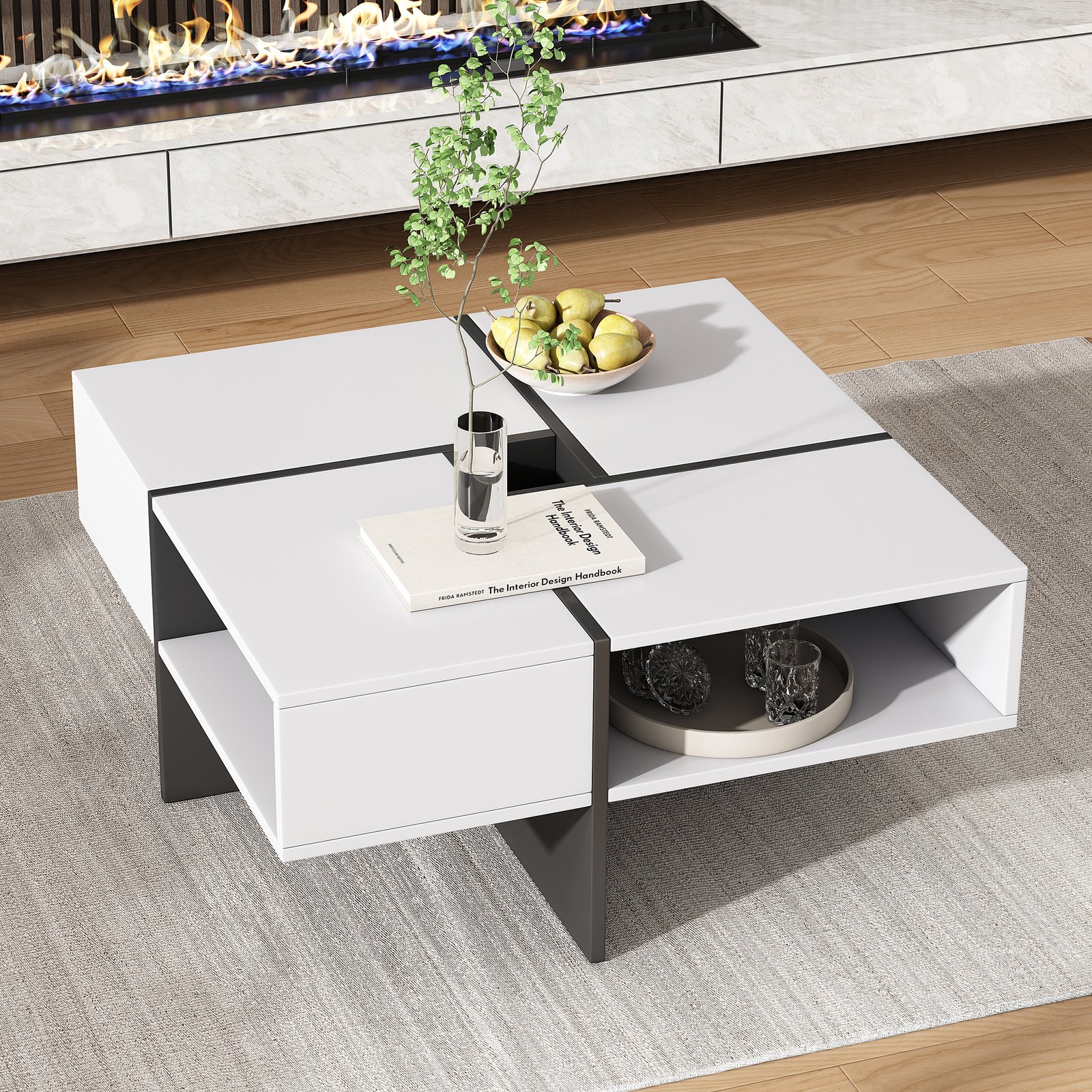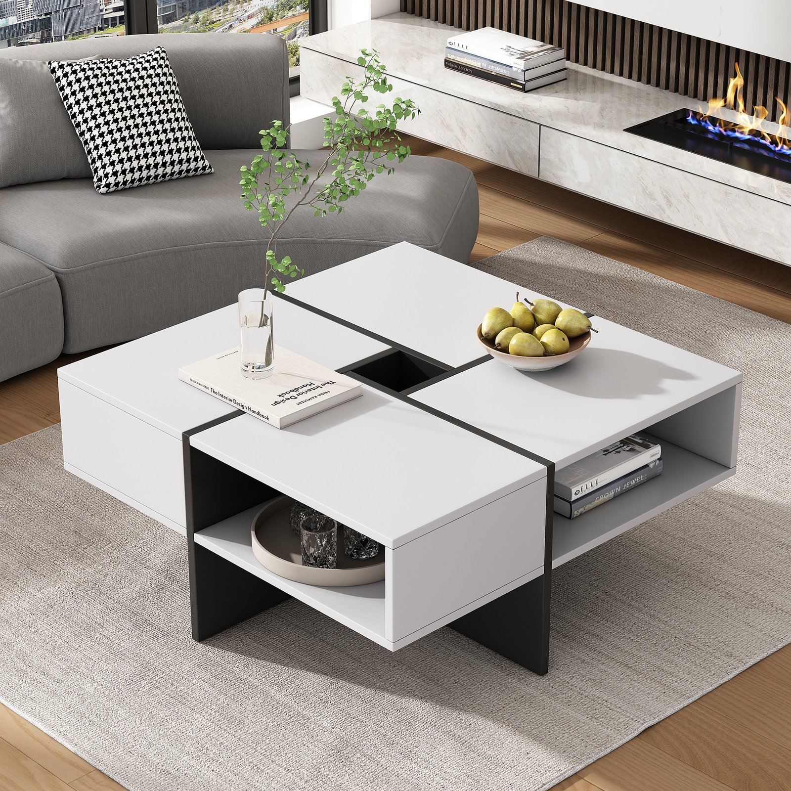 Affirmez un style moderne et structuré dans votre salon avec cette table basse carrée bicolore, qui associe des lignes géométriques nettes à une finition mate épurée. Sa conception en quadrillage crée quatre modules intégrés offrant des espaces de rangement ouverts, parfaits pour vos livres, télécommandes ou objets déco.