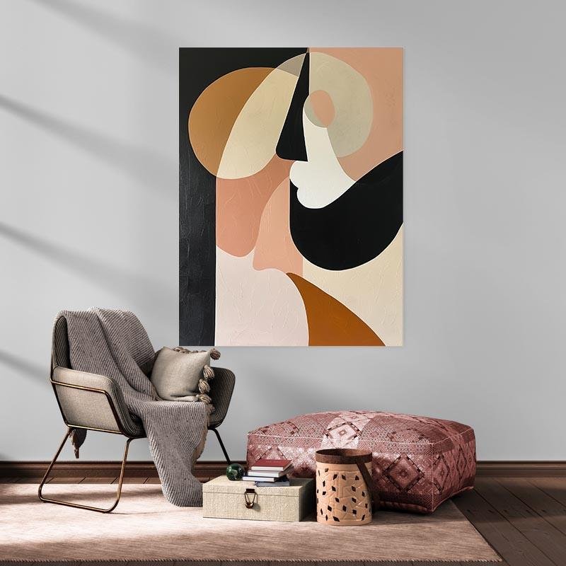 Le tableau abstrait noir rose et beige capte immédiatement l’attention. Ses formes géométriques et ses nuances subtiles créent une œuvre élégante et contemporaine. Ce tableau est parfait pour ajouter une touche de sophistication à n’importe quelle pièce.