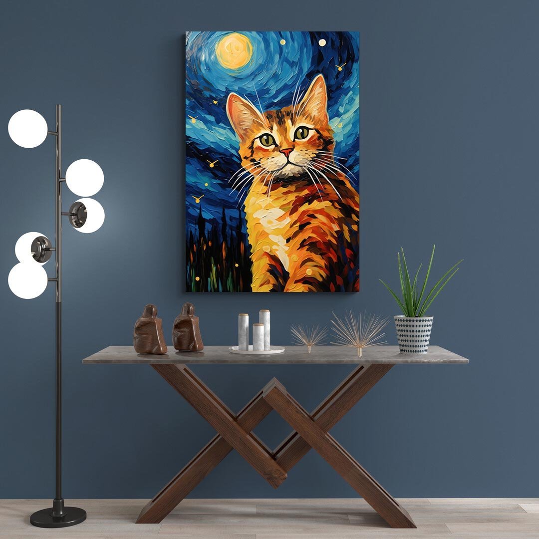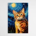 Nuit Étoilée Féline est bien plus qu’un tableau ; c’est une fenêtre ouverte sur un univers où chaque regard révèle de nouveaux détails, une nouvelle perspective. Invitez ce chat à rejoindre votre collection et laissez-le illuminer vos murs de sa présence apaisante et inspirante.