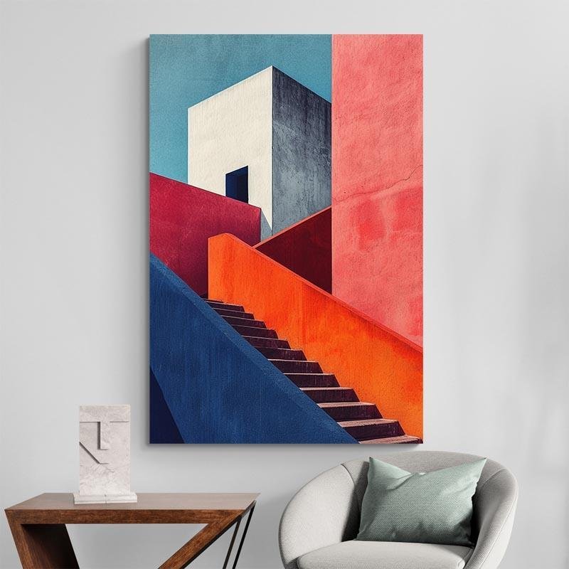 Ce Tableau Architecture Rouge et Bleu présente une composition vibrante et géométrique, parfaite pour dynamiser n’importe quelle pièce. Les lignes audacieuses et les couleurs contrastées captent immédiatement l’attention.