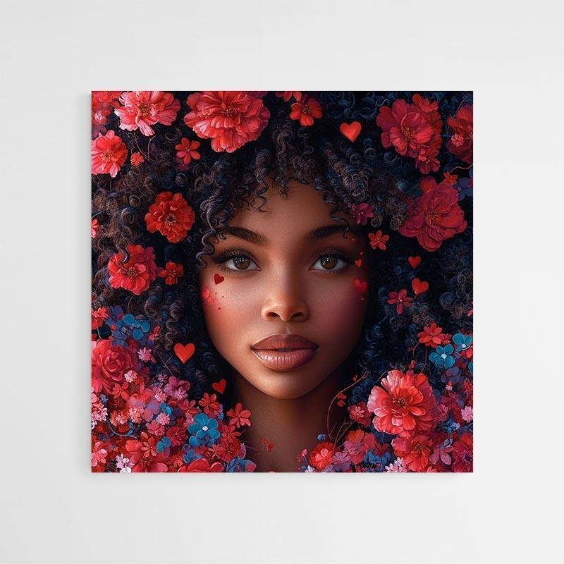 Pour une décoration harmonieuse, associez ce tableau à des murs aux teintes neutres comme le blanc, le beige ou le gris. Le Tableau visage femme fleurs rouges se marie aussi bien avec des meubles en bois naturel qu’avec des éléments de décoration dorés ou cuivrés.