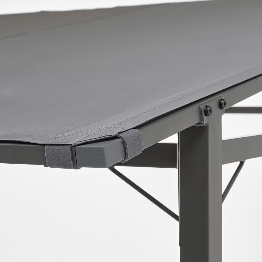 La structure de la tonnelle est fabriquée en acier peint époxy, un matériau facile à entretenir.