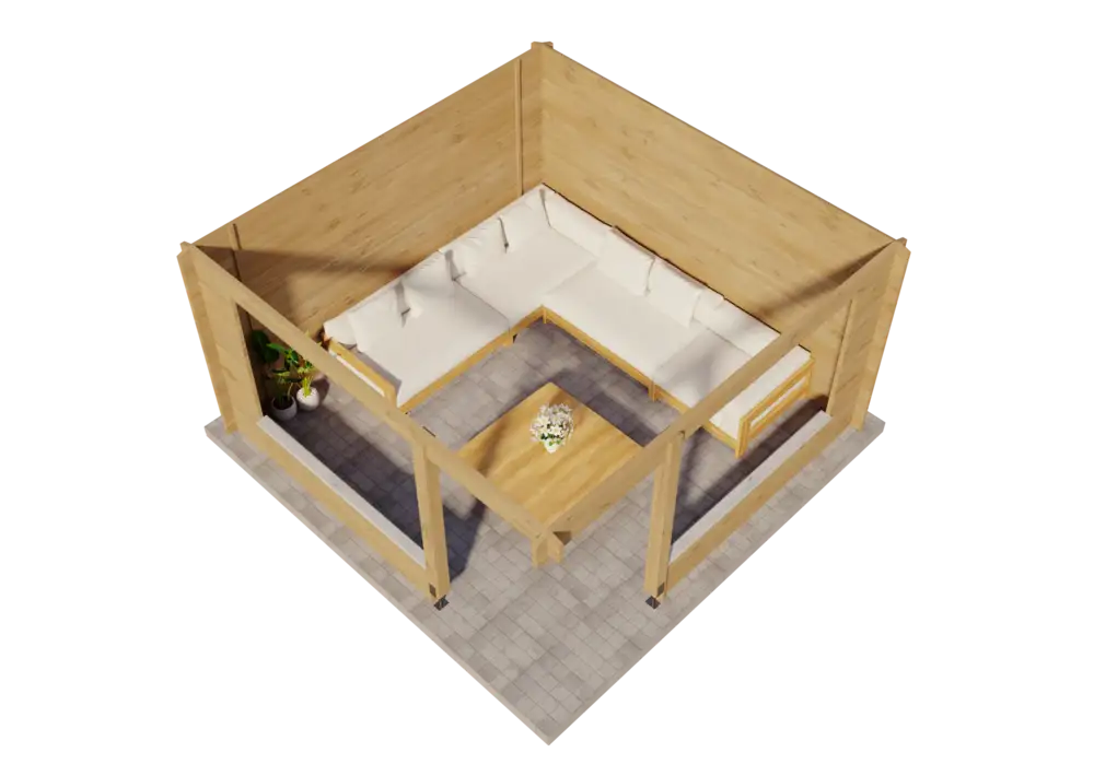 - Dimensions extérieures avec débord de toit : 425 x 425 cm