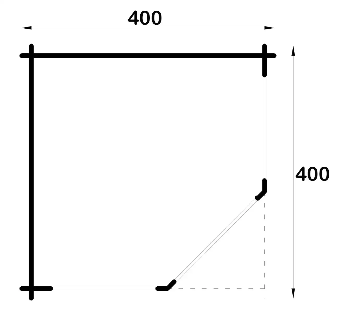 - Dimensions extérieures : 400 x 400 cm